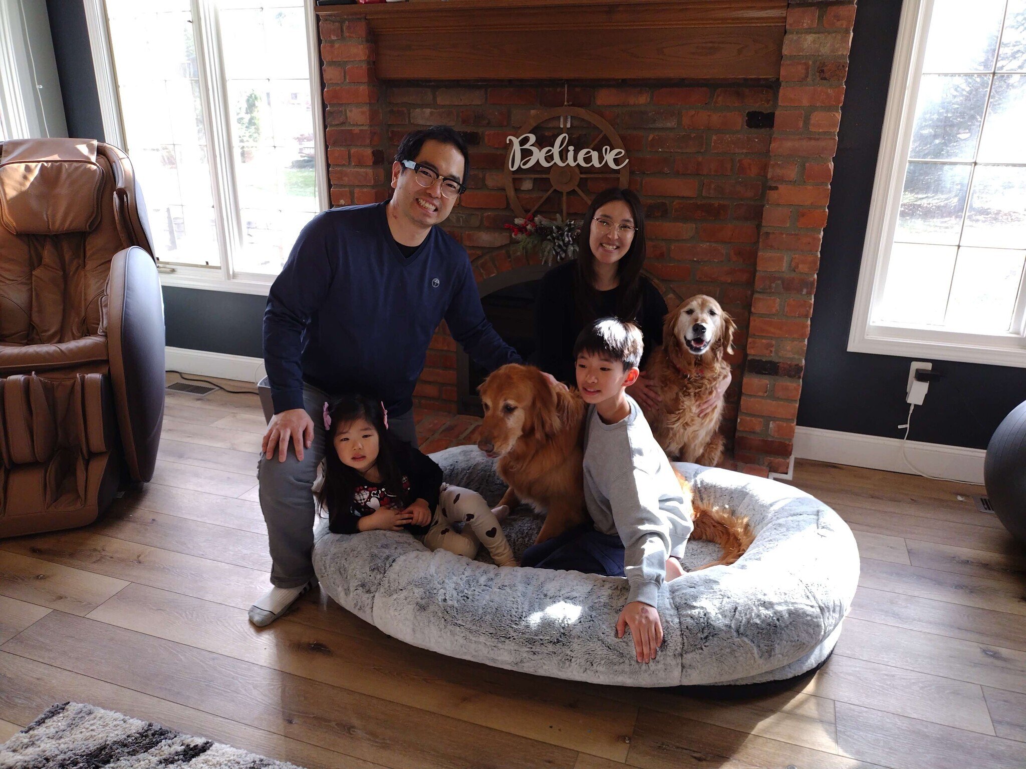They were raised with children with no known problems but have not been exposed to children in their foster home so children over 10 may be best.