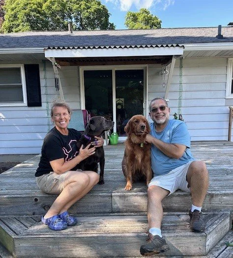 Here is Indy with his new family including Coco the Chocolate Lab. Congratulations to everyone!